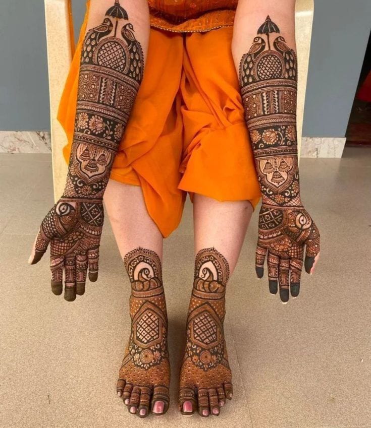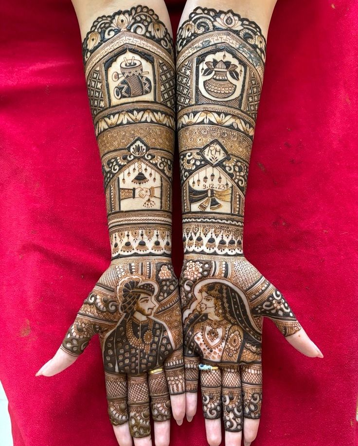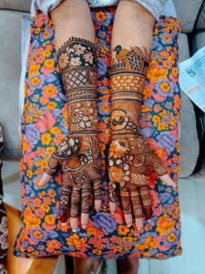 We provide personalized consultation to understand your theme, outfit, and design preference. Whether you want dulha-dulhan portraits, hidden groom names, Arabic patterns, or traditional full-hand coverage, we customize the design according to your vision.